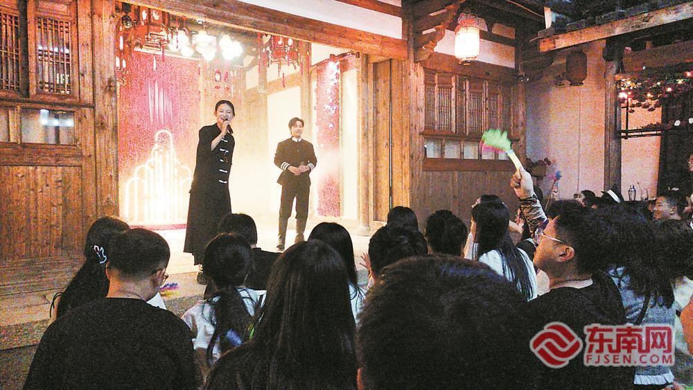 华灯初上,“00后”赖世好和朋友来到位于仓山区仓观顶巷8号的“烟山旧”沉浸式剧场,这是一座由百年老房子改造而成的剧场。与在普通剧场观剧不同,这次赖世好和小伙伴要扮演自己选定的角色并参与到剧中。他们当天要体验的剧本叫《先生》,需要先到道具间选道具,再根据道具扮演特定角色,不同角色会有不同的剧情。