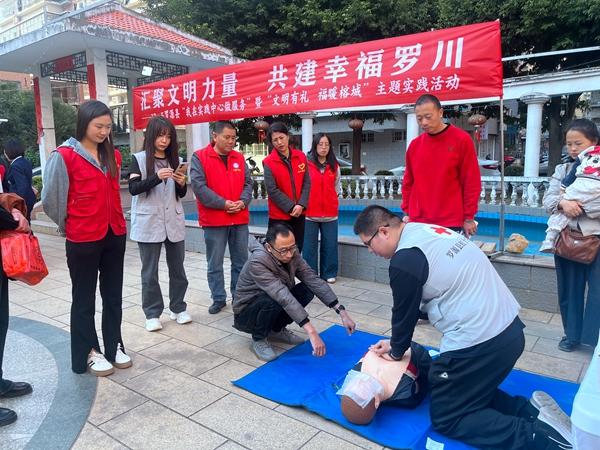 便民服务区热闹非凡,各项服务有序开展,处处洋溢着温馨与感动。县红十字会志愿者带来心肺复苏急救培训和AED使用教学,现场演示成人及婴幼儿气道异物梗阻等常见意外的应急处理方法,吸引了众多居民驻足学习。“这些急救知识很实用,关键时刻能救命!”居民林先生边学边感慨。县妇幼保健院医护团队开展义诊,为居民测血压,提供冬季呼吸道疾病预防建议。此外,现场还提供心脑血管和心梗风险检测、视力检测、老花镜清洗、爱心剪发、家电维修等多项贴心服务,居民们的笑容和由衷的赞誉,成为对本次活动最好的肯定。
