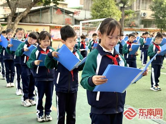 “凡读书,须整顿几案,令洁净端正。将书册整齐顿放,正身体对书册,详缓看字,仔细分明……”最近,每天上午大课间活动前,泉州市鲤城区东门实验小学一千多名学生拿着讲义夹走到操场,齐声诵读《童蒙须知》。