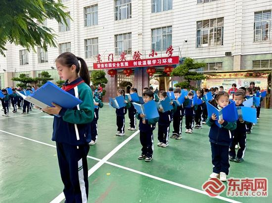 正衣冠、端正站姿、拿好讲义夹、大声朗诵……对于东门实小的学子们而言,此次诵读并非流于形式,那些看似简单的动作,已融入他们的行为习惯中。