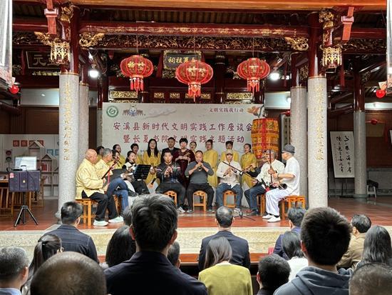 据了解,安溪全县已建成新时代文明实践中心1个、实践所24个、实践站495个、52个实践点,县乡村三级贯通的实践网络基本形成。特别是今年探索打造了首批8个宗祠书院,成为基层文明实践工作的坚强堡垒,“文明实践服务圈”进一步拓展。聚焦群众需求,探索“群众点单-部门乡镇接单-社会评单”模式,常态化开展理论宣讲、文化惠民、志愿服务等活动,有效打通了宣传服务群众的“最后一公里”。探索“文明实践+茶文旅”“打造宗祠书院+文明实践”等路径,推动文明实践活动融入产业发展、百姓生活,实现了精神文明与物质文明互促共进。组建起“茶小宣”、“农民讲师团”和移风易俗劝导队、老年少年研学志愿讲解服务队等一批由党员干部、乡土人才、志愿者等构成的骨干队伍,打造了农民讲师团宣进和戏曲宣讲等特色服务品牌,让文明实践有温度、有力量。今年来,安溪县以盘活闲置宗祠(古厝)为核心抓手,围绕新时代文明实践“思想铸魂、文明教化、文化惠民”核心目标,通过“建阵地、强队伍、优活动、立机制”四维路径,推动优质文化资源直达基层,探索新时代文明实践在基层发展路径。截至目前,已开展理论宣讲8场次,受众4600余人;文明志愿服务32场次,惠及群众11200余人次;文艺活动12场次,受众6800余人次。