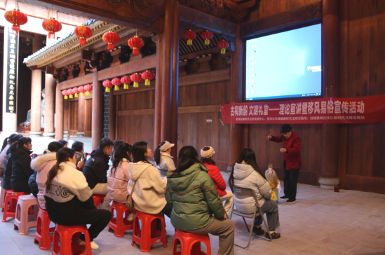 文明风12月9日讯 为积极培育和践行社会主义核心价值观,持续推进移风易俗,培育文明、和谐、健康的社会新风尚,近日,一场别开生面的“汇聚志愿力量 共建美好社会”移风易俗宣传活动,在柘荣县双城镇城北社区古色古香的袁天禄纪念馆内举行。