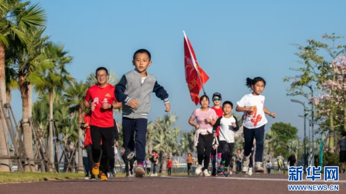 滨海浪漫线彩虹跑道上,中洲社区居民参加亲子跑活动(资料图)。新华网发(受访者 供图)