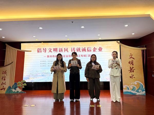 12月9日,“倡导文明新风 铸就诚信企业”泉州市诚信进企业宣传(洛江专场)举行。活动旨在深入学习宣传贯彻党的二十届四中全会精神和习近平总书记关于诚信建设的重要论述,弘扬诚信文化,提升企业及员工的文明素养和诚信意识,营造“知信、用信、守信”的良好营商环境。