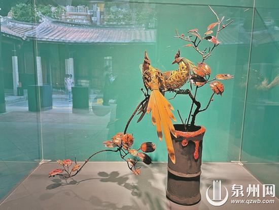 记者在现场看到,来自安溪的数十件藤铁工艺品已经被放置在玻璃展柜中,灯光之下,用藤铁制作的孔雀、花鸟、树木等作品惟妙惟肖。据悉,即将在这里开启的第一场专题展是安溪藤铁工艺精品展,聚焦安溪藤铁与竹编工艺的核心价值,融合非遗技艺、自然意趣与人文情怀,集中展现技艺的传承脉络与时代创新。