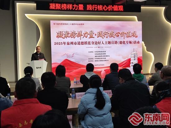 冬日暖阳映瓷韵,榜样微光聚星河。12月12日,2025年泉州市“凝聚榜样力量・践行核心价值观”主题宣讲(德化专场)活动举行。活动以深入学习宣传贯彻党的二十届四中全会精神为核心,通过榜样宣讲、文艺展演与礼遇部分模范典型相结合的形式,让社会主义核心价值观在千年瓷都落地生根,营造出“学习模范、争当好人” 的浓厚社会氛围。