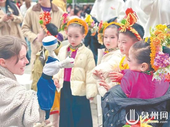 孩子们手持木偶与外国友人积极互动 (泉州幼师附幼 供图)