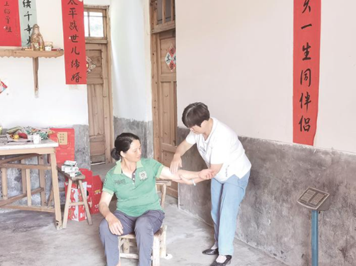 官春香和周美兰选择在夜晚叩门,一次次夜访中,她们一边陪伴孩子,一边用传统拍打手法为余妈妈残疾的母亲做康复。
