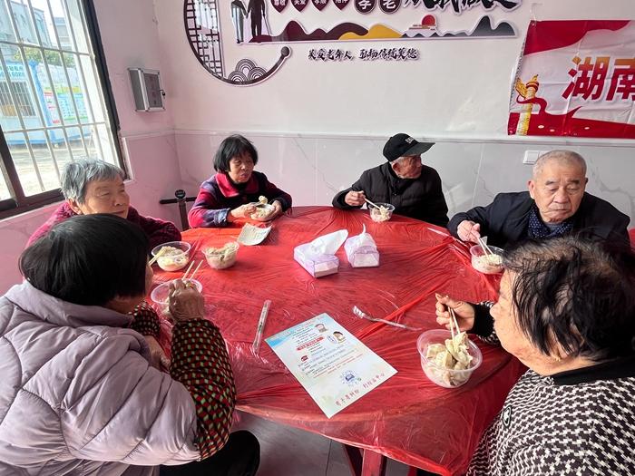 湖南社区新时代文明实践站老人们在吃饺子