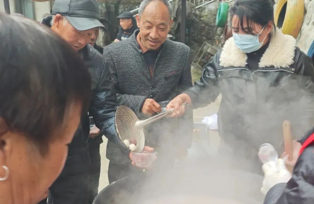 在溪底村村播小院里,平溪镇主播与巾帼志愿队分工协作、默契配合,忙着包起高粱、糯米双味馅料的汤圆。孩子们围在灶台边,踮着脚尖认真模仿体验,欢声笑语洒满整个小院。“用做自媒体赚的钱,请大家吃汤圆,特别有意义!”村主播朴实的话语,道出了这场邻里团圆宴的暖心初衷。村女主播与村民友灿的热心赞助,更让这份冬日里的暖意加倍升温。