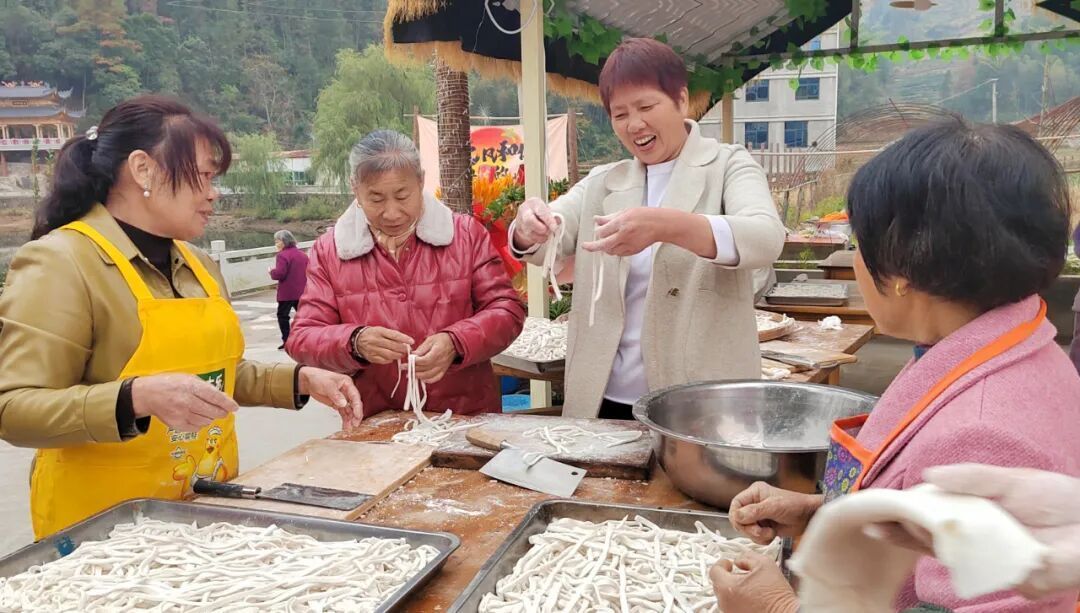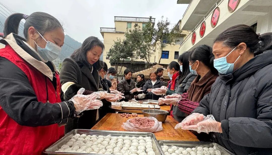 在东木洋村的“伴月潭”小院里人声鼎沸、笑语盈盈,巾帼志愿者们亮出巧手,麻利地制作着当地特色小吃粉秋和“冬至丸子”,浓郁的香气丝丝缕缕飘满整个小院。党员先锋队主动靠前引导,让群众排队领取井然有序;银发贡献队的老同志们也不甘示弱,忙前忙后收拾桌椅、递碗筷,三支队伍分工协作、合力服务,把冬日的温暖送到了每个人的心坎上。80岁的张大爷乐呵呵地感慨:“如今过日子真是越来越有滋味,啥节日都过得热热闹闹的,全靠村里这三支队伍贴心张罗啊!”