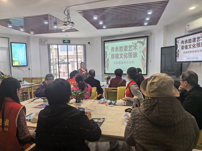 活动伊始,文化志愿者以生动诙谐的讲解,带领大家走进京剧脸谱的世界。从脸谱的历史渊源、发展脉络,到不同色彩与图案背后所代表的人物性格与命运——红脸的忠义果敢、黑脸的刚正不阿、白脸的狡黠多疑、金脸的神圣威严,志愿者娓娓道来。现场长者听得津津有味,不时提问互动,气氛热烈。