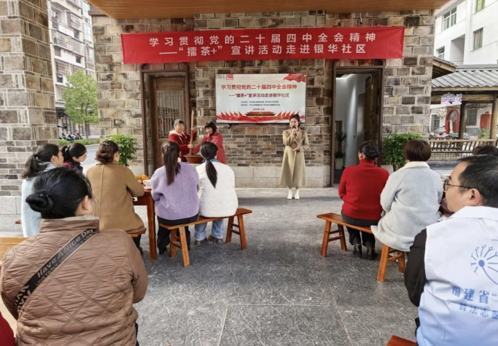 将乐县“乐说青年”宣讲团走进水南镇银华社区开展党的二十届四中全会精神“擂茶+”宣讲活动