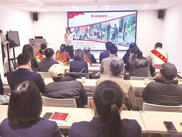 “刺桐花开三公里,坚守半生护乡邻”,在螺阳镇霞光村“党建+”邻里中心世纪金融服务站,宣讲现场座无虚席,来自山霞中心小学的宣讲员欧阳薇讲述的89岁泉州市优秀共产党员杨友诚的故事率先打动全场。1991年退休返乡后,面对家乡山腰村海风肆虐、台风频发的困境,他拿出省吃俭用的退休金购买刺桐树苗,开启了长达30年的植树之路。白天栽种管护,夜晚自学培育技术,双手磨破、腰疾缠身也未曾停歇,即便遭遇树苗被拔、亲友埋怨的困境,他仍坚定表示:“拔了就再种,总有一天他们会理解。”