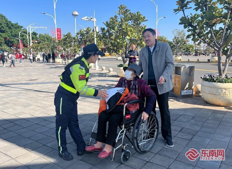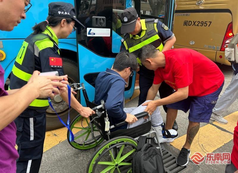 医务交警为行动不便的考生提供帮助(集美区义务交警队供图)