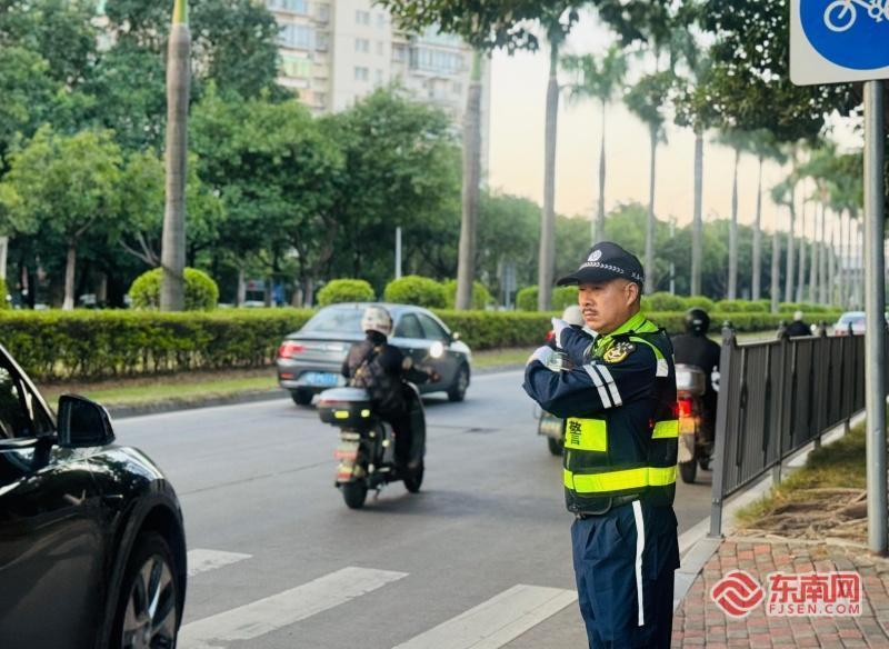 义务交警在学校附近守护平安上学路(集美区义务交警队供图)