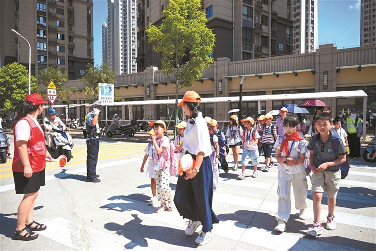 金榕社区“好厝边”护学岗织起校园“安全网” 。黄子煖 摄