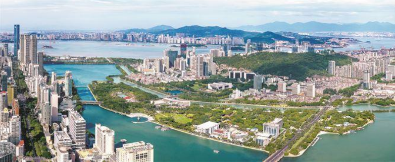 厦门正全力打造“大厦之门 文明之城”城市文明品牌赋能文明新大厦,描绘面向未来的现代化人民城市文明新图景。图为优美的筼筜湖风光。