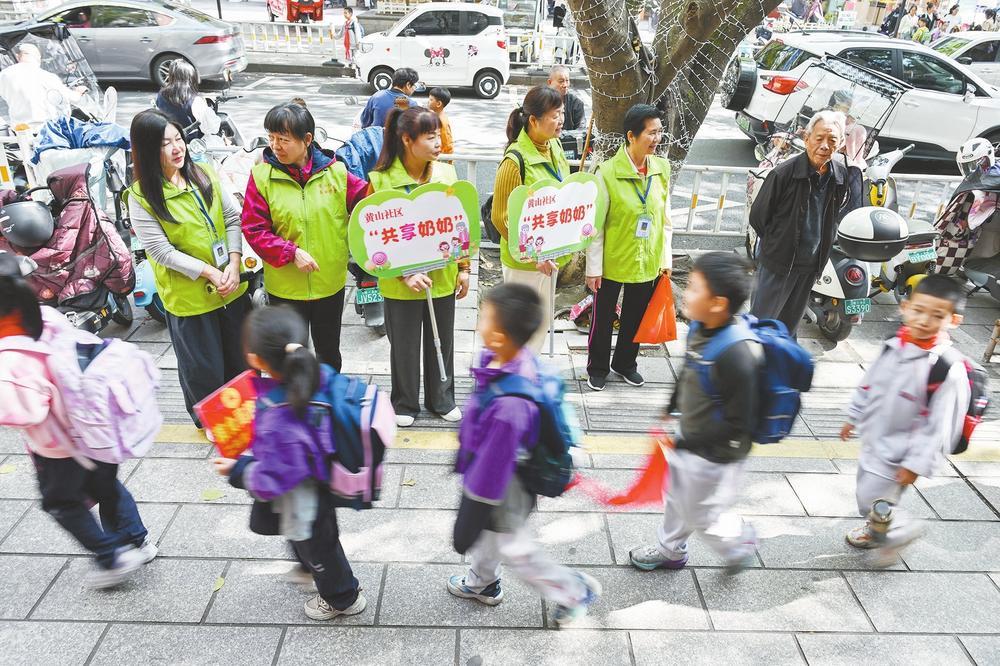 2025年11月6日,“共享奶奶”牵着孩子的手,漫步在连接学校与社区工作室的温情之路上。