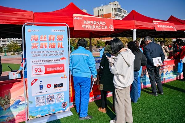 为激发文明实践内生动力,构建新时代文明实践长效机制,泉州市委文明办联合中国石油泉州分公司推出“海丝有爱 实践‘油’礼”主题活动,礼遇全市文明实践志愿者,并把主题活动带到现场,让暖心礼遇与服务直达家门。