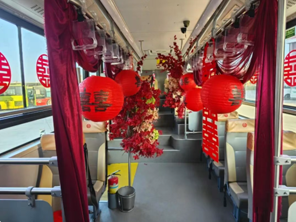 “公交婚车”内饰喜庆布置