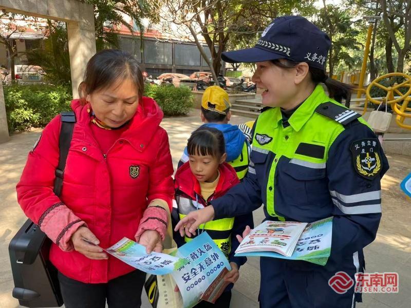 “小手拉大手,交规共遵守”。铁山社区新时代文明实践站联合集美义务交警队开展交通安全教育活动,通过手势教学、案例分析与实地宣导,帮助亲子家庭掌握安全知识,筑牢社区平安防线。