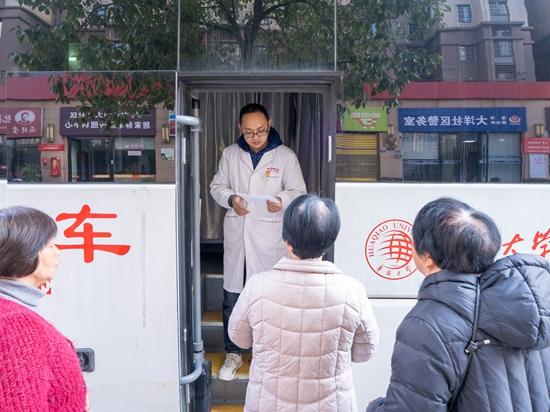 “爱心车”大巴早已静候在路边,准备迎接居民们的健康咨询。主办方 供图