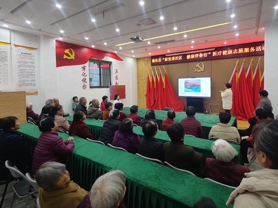 现场不仅提供基础医疗服务,还开展了内容丰富的健康讲座。在新时代文明实践站室内,医护人员向中老年居民讲解常见疾病的预防和康复知识。