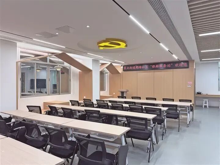 鹤峰社区居家养老服务站(银龄服务站)开放交流区。