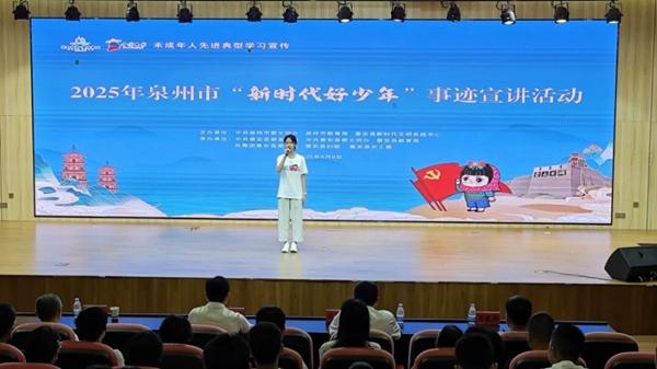 2025年泉州市“新时代好少年”文明实践研学活动在惠安举行,新时代好少年分享事迹。林杰 摄