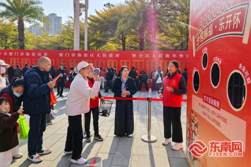市民们排队体验“沙包掷福·乐开怀”。东南网记者 刘玮 摄
