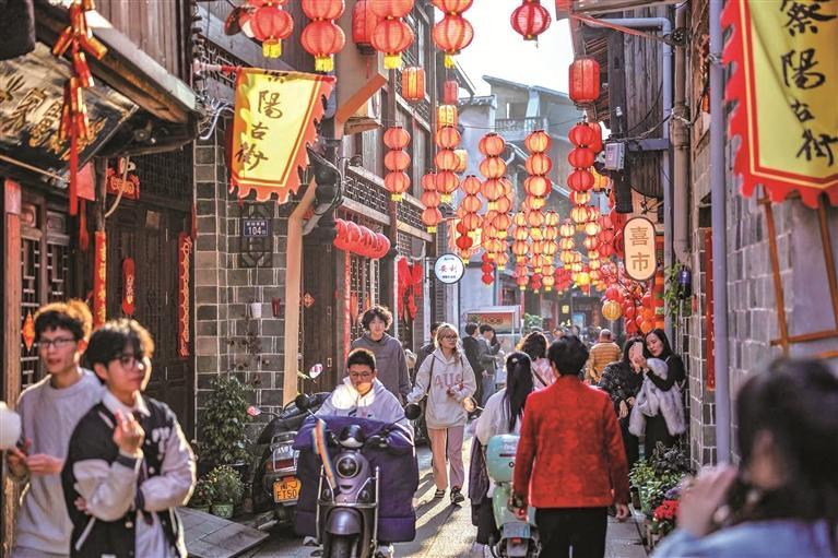 保护性修缮后的察阳古街热闹非凡。李郁 摄
