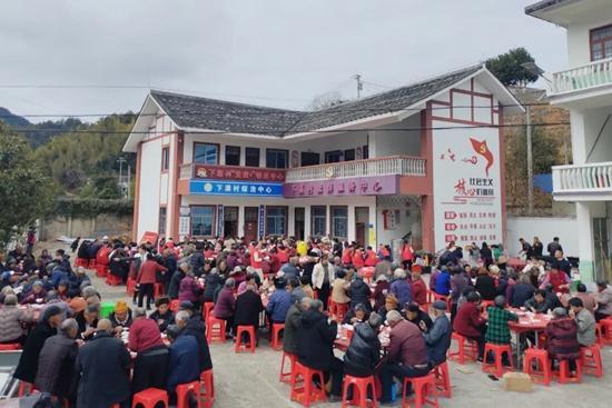 活动现场,“爱心厨房”人气最旺。志愿者林传卢得知活动将为全村70岁以上老人送上腊八关怀后,主动捐赠自家饲养的一头生猪,为老人们打造热气腾腾的“全猪宴”,让烟火气中多了份邻里守望的暖意。中午,200多位70岁以上老人陆续入座,志愿者们端上喷香的腊八粥和可口的全猪宴菜肴。“这肉炖得真烂乎,这辈子没吃过这么热闹的腊八饭!”81岁的林奶奶笑容满面。老人们围坐畅谈、共话新春,欢声笑语与菜肴香气交织,构成一幅温馨和睦的乡村图景。