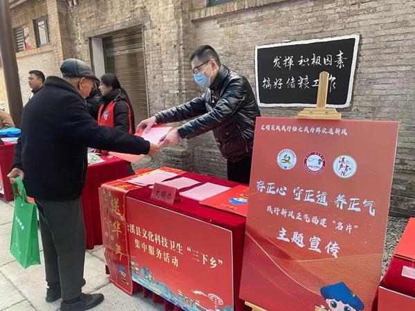 文明风1月30日讯 为迎接新春佳节,1月30日,松溪县委文明办在郑墩镇“1955·粮仓里”开展“存正心、守正道、养正气”(以下简称“三正”)宣传活动。活动以“三正”名片为主题,结合文化科技卫生“三下乡”集中服务、“文明实践之我为群众送新风”活动,推动“三正”理念融入乡村治理、浸润群众生活,巩固提升新风正气福建“名片”,擦亮新时代文明底色。