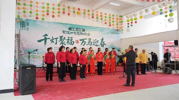 在“立春·村宴”文艺联欢会上,东溪口村腰鼓队以《醒春·腰鼓》的铿锵节奏唤醒春日生机,而《看山看水看中国》则通过纯净人声演唱,唱响了对祖国山河的深情礼赞。村宴中,美食唤起了人们的味蕾,香煎炸年糕、茶香卤仔鸭、牛奶根炖鸡、珍珠纳底羹等,人们在品鉴美食、观赏演出之中话家常、叙乡情,舞台上下融为一幅温馨祥和、声色生香的新春画卷。