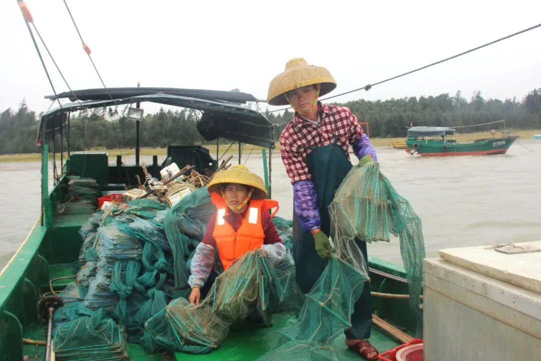 王雄葵夫妇在海上打渔。