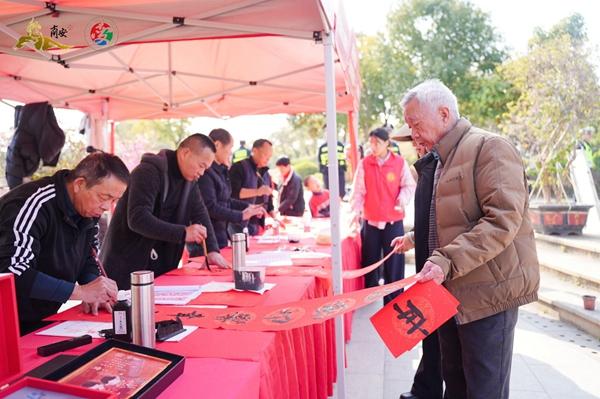 活动同步开放的“文明集市”更是人气爆棚。南安市创城办、实践中心派送《南安市民文明手册》及卡通读本,公安局开展反诈禁毒宣传;文体旅局互动小游戏送好礼,市文联书法家免费写春联送福,中医理疗、肩颈舒缓暖心上线,逛集市、学知识、享服务,福利不停歇。现场还有非遗体验、民俗展示超有料,网络安全、反诈等主题宣传干货满满。市民纷纷在南安城市文明建设助力墙前驻足打卡、合影留念。