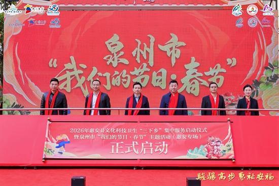 新春脚步渐近,年味愈发浓厚。2月2日,泉州市“我们的节日·春节”主题活动(惠安专场)暨2026年惠安县文化科技卫生“三下乡”集中服务启动仪式在惠安县紫山镇光山小区热闹启幕。