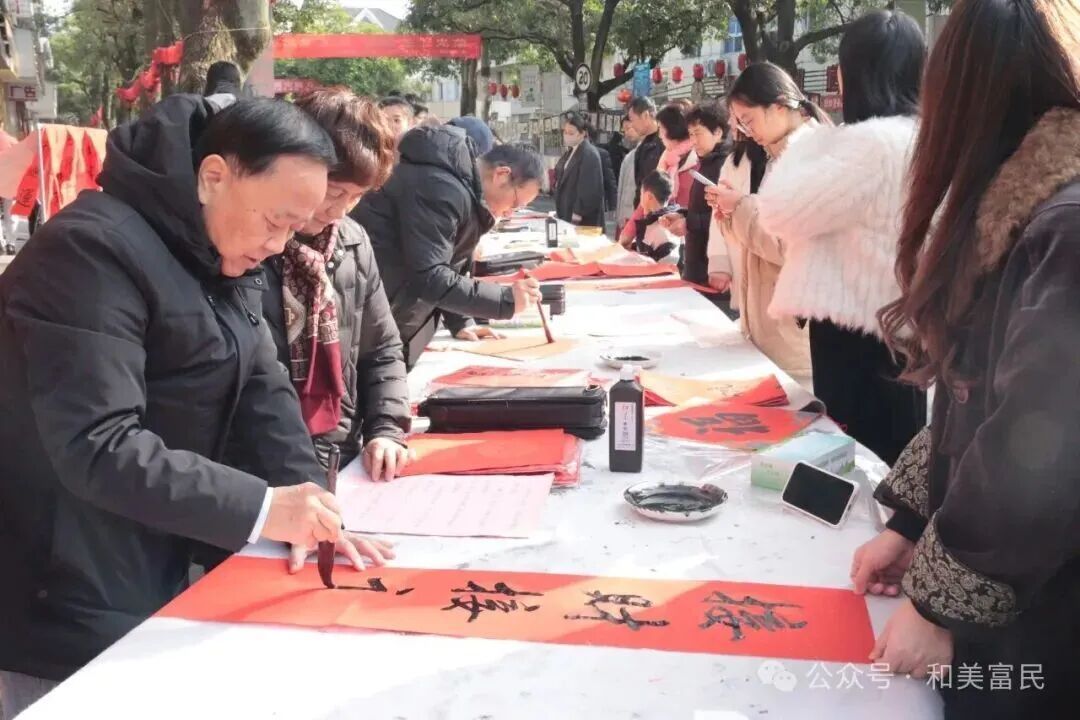 福鼎富民社区“习俗有礼传文脉 笔墨送福暖近邻”文化惠民送春联文明实践活动。