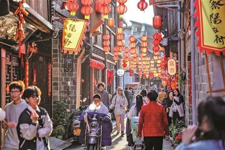 保护性修缮后的察阳古街热闹非凡。