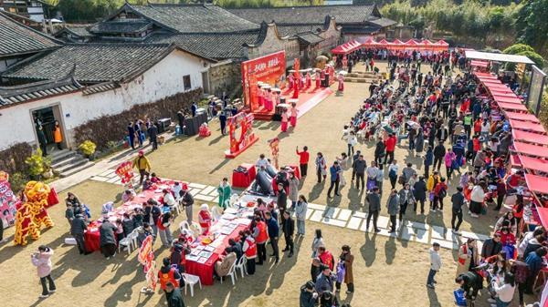 文明风2月5日讯 新春将至,暖意先行。2月4日上午,连江县丹阳镇坂顶村杜棠自然村内人头攒动、欢声笑语不断,2026年连江县文化科技卫生“三下乡”集中服务活动在此热闹举行。