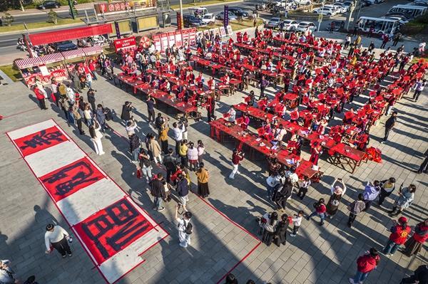 活动现场,百余名书法家、书法爱好者、文明家庭、身边好人及“新时代好少年”等齐聚一堂,挥毫泼墨,书写春联与福字。通过精心设计,让理论政策、文明新风等“精神食粮”巧妙地融入书法创作、春联赠送等环节之中。市民们有序排队,满怀期待地领取这份特别的“文化年货”,脸上洋溢着幸福的笑容。“活动办得太好了,不仅领到了免费春联,还激发了我对毛笔书法的兴趣。”刚领到春联的小朋友陈可馨笑着说道。