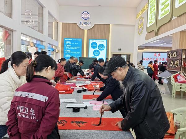 活动现场人气高涨、暖意融融,各类文明实践环节有序开展、亮点纷呈。翰墨迎春送福专区,书法志愿者现场挥毫泼墨,精心创作饱含新春祝福与文明内涵的春联、福字、春字作品,免费发放给往来群众,以笔墨传情、以文化润心,让传统年俗融入文明新风。移风易俗互动宣教区,创新采用套圈、投壶等群众喜闻乐见的民俗游艺形式,将婚事新办、丧事简办、孝老爱亲、勤俭节约等文明理念融入趣味互动,群众在沉浸式体验中学习文明知识、践行文明规范,参与活动即可兑换文化文创、居家实用等礼品,有效提升移风易俗宣传的吸引力与覆盖面。健康惠民志愿服务岗,卫健系统专业志愿服务队开展健康科普宣讲,围绕冬季养生保健、食品安全、常见病预防等内容答疑解惑,现场发放健康宣传手册800余份,把健康服务和暖心关怀送到群众身边。