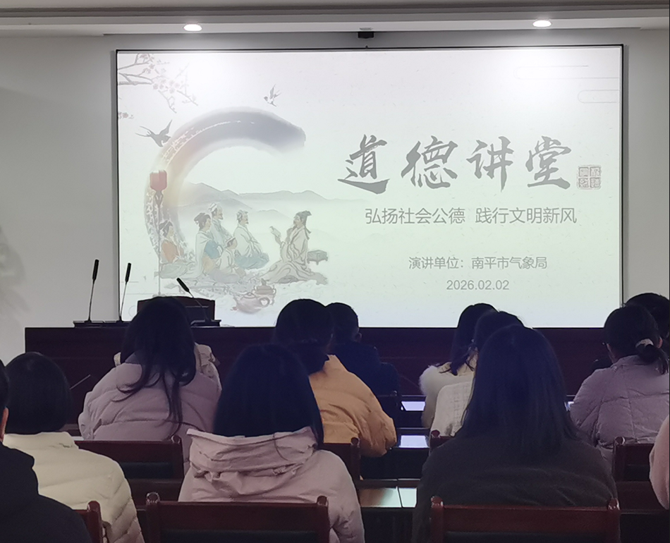 文明风2月6日讯 为强化干部职工的社会责任意识和公共意识,增强践行文明新风的使命感,积极投身南平创建文明城市工作,2月2日,南平市气象局举办“弘扬社会公德 践行文明新风”主题道德讲堂,干部职工齐聚一堂,接受道德滋养,凝聚创城共识。