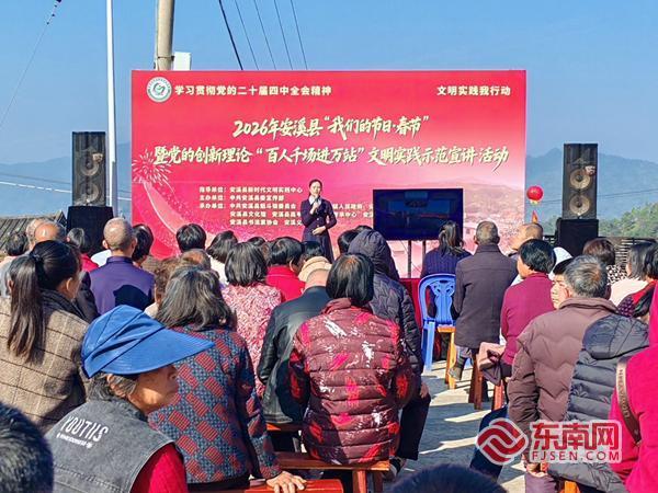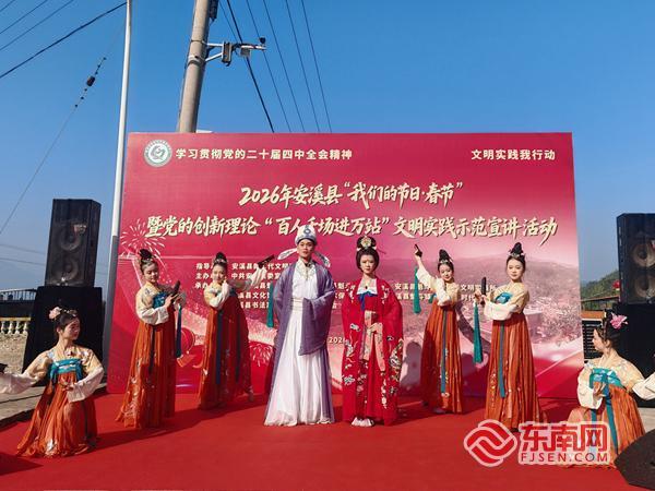 新春将至,万象更新。2月6日上午,2026年安溪县“我们的节日·春节”暨党的创新理论“百人千场进万站”文明实践示范宣讲活动在魁斗镇钟山村古厝广场举行。活动将党的创新理论宣讲与文艺展演、民生关爱、文化服务有机融合,送上了一场兼具理论深度、文化韵味与民生温度的新春盛宴。
