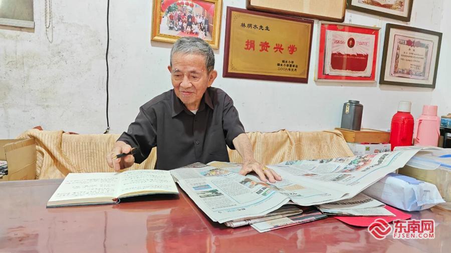 九旬老者林炳水读报写日记的习惯保持了三十余年。林劲峰 摄