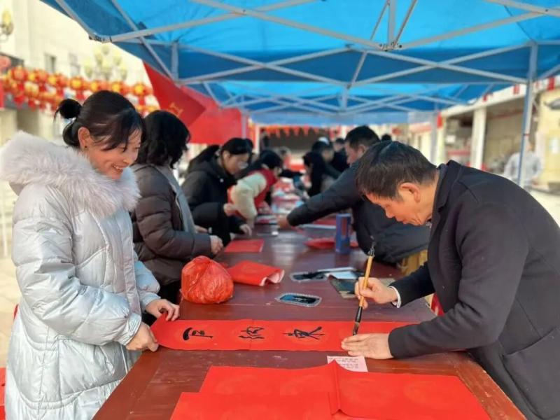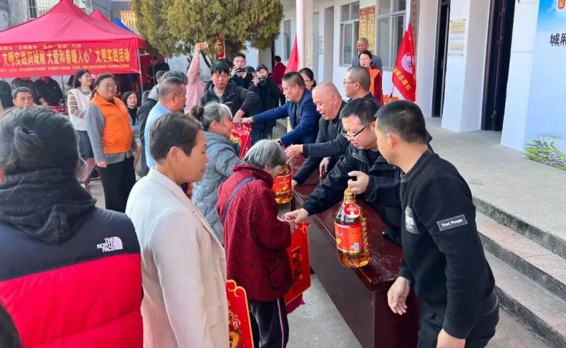 活动中,工作人员为困难家庭送上大米、食用油、春联等暖心慰问品,并组织志愿者开展现场义写春联、义诊、义剪等便民服务,同步开设政策宣讲、防诈骗反传销宣传专区。现场还开展党的创新理论“百人千场进万站”宣讲、“强村带弱村”交流研讨等活动,让党的创新理论走进基层、走进群众,助力党的理论在乡村落地生根;同时,常态化开展移风易俗宣讲,引导村民树立文明新风,持续推动乡村精神文化建设提质增效。这一创新举措不仅有效促进了党建工作与文明实践工作的彼此赋能、双向提升,更成功构建起常态化、精准化、融合化的基层服务机制,为区域文明实践工作高质量发展奠定了坚实基础。