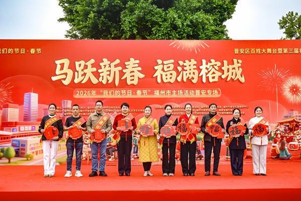2月6日上午,“马跃新春 福满榕城”——2026年“我们的节日·春节”福州市主场活动晋安专场,在晋安湖公园青鸾广场隆重举行。本次活动由中共福州市委文明办、晋安区新时代文明实践中心主办,福州日报等多家单位承办。