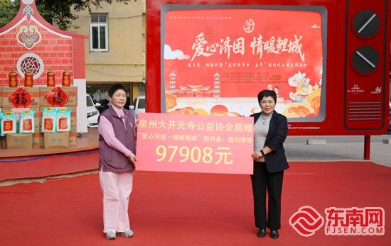 泉州大开元寺公益协会代表向鲤城区新时代文明实践中心捐赠慰问资金和物资。鲤城区委宣传部 供图