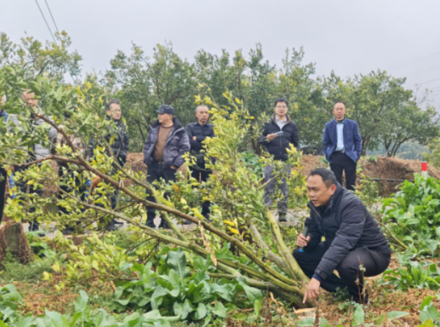 宣讲员在柑桔园开展政策宣讲、技术指导
